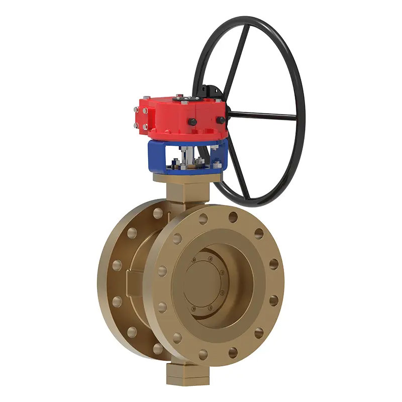 วาล์วผีเสื้อบรอนซ์สามรูปแบบสามเหลี่ยมจัตุรัสเหมาะสำหรับการบำบัดน้ำทะเลในการดำเนินงานน้ำมันและก๊าซและมีความทนทาน